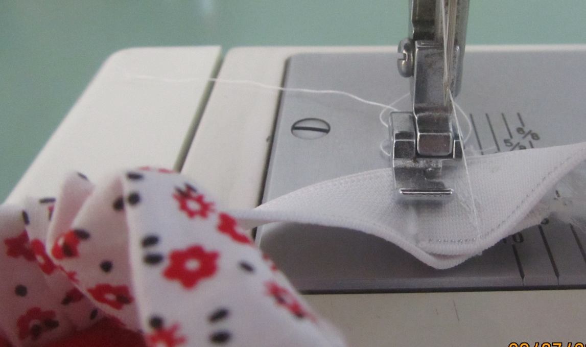 Keep the ends of the elastic overlapping and sew back and forth a few times to secure it (picture for illustration purpose).