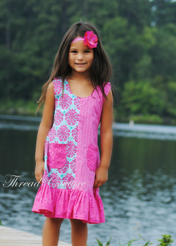Use this sewing pattern for a cool and classy summer dress to awaken your little girl’s inner fashionista. Designed specially for your little diva, this dress has no zippers or buttons and is designed with an elastic shoulder strap for easy on and off. A printable full body template would make sewing this dress a breeze. Play with different fabrics and give this sewing pattern your own special touch. With its contrasting prints and handy pockets, this dress adds a kiss of sweetness to your little girl’s spring/summer wardrobe.
