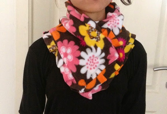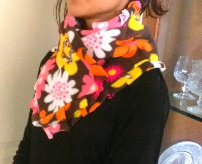 Fleece cowl is a perfect accessory to keep the winter blues away from your neck! This fleece cowl is one of my simplest patterns and can be whipped up in minutes! You can give a personal twist to the design by using printed fleece for the body of the cowl and solid fleece for the ruffle. Lace is also a good option for the ruffle. Adding ornamental wooden buttons add a vintage touch to the cowl. Team it up with a simple top and jeans or tuck it inside your winter jacket to boost your feminine charm!