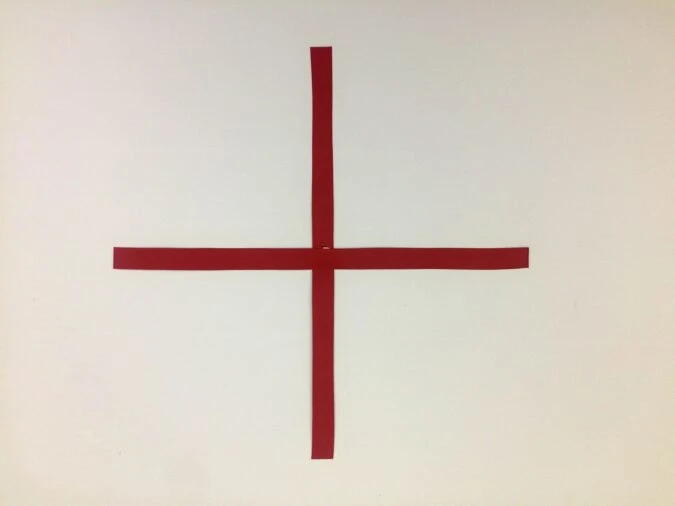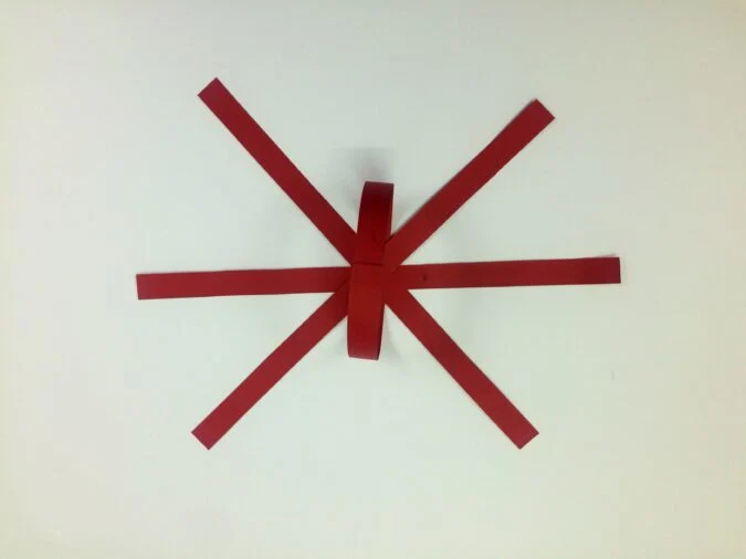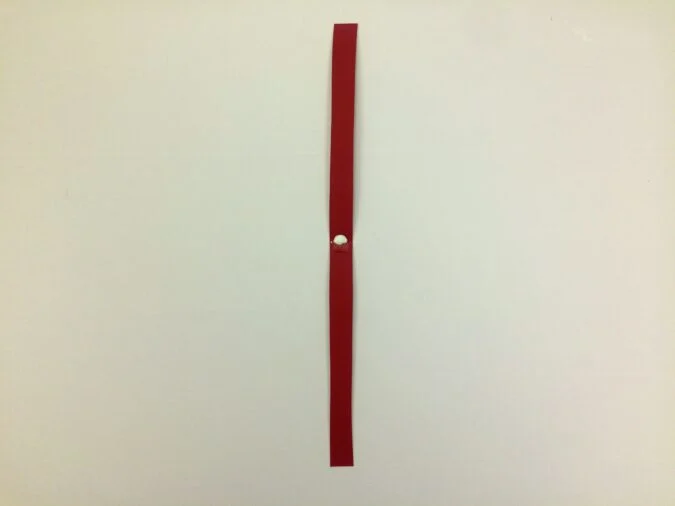 Take another paper strip and glue it at a right angle to the first one, along its center.