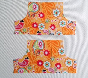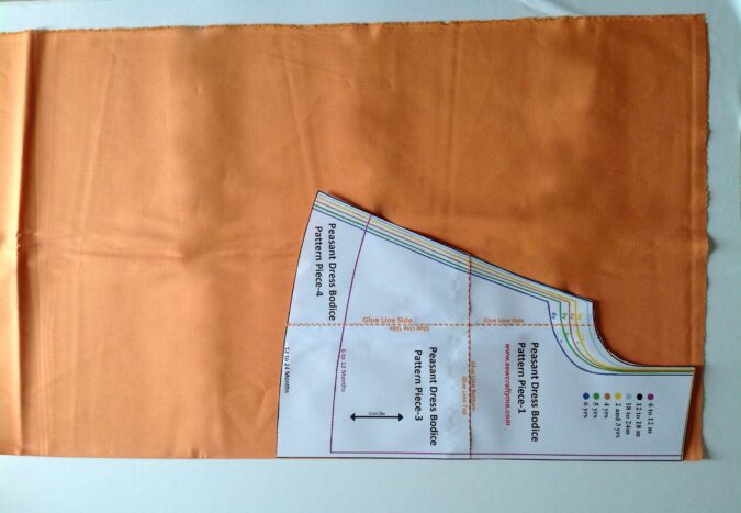 Take the template and the dress fabric. Fold the fabric to fit the width of the template. Place the template on the fold and mark around it (picture for illustration purposes).