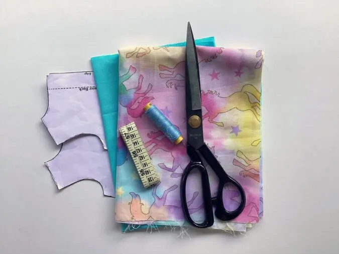 - Medium- weight cotton fabric scrap in a coordinating color and print for the dress lining.