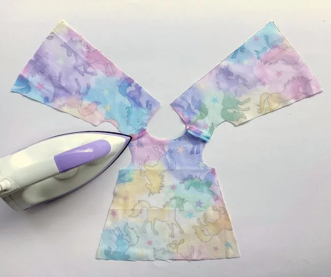 Sew the front and back lining pieces together, just as the dress pieces. Here again, press the seams flat.