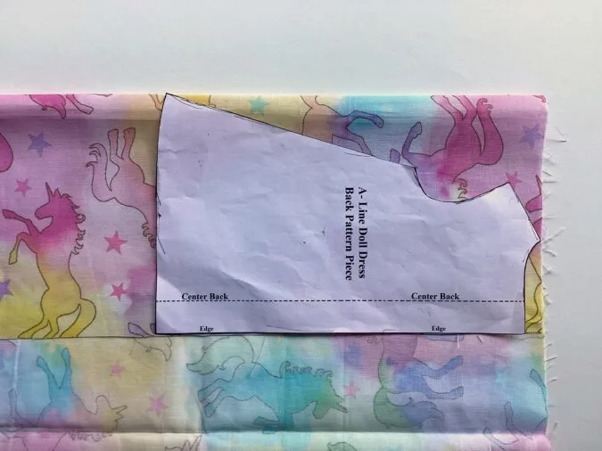 Let’s cut the dress back. Here again, fold the fabric, but this time, place the template for the dress back, along the edge of the fabric. Mark around it and cut to get two pieces for the dress back (the back part of the dress is done in two pieces, for button opening). Repeat the steps to get the back lining pieces.