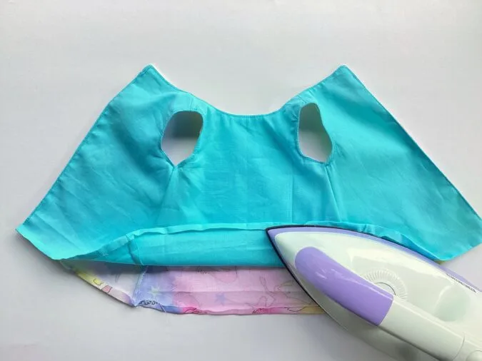Fold the lower edges of the dress and lining towards the wrong side by 1/2- inch and press to set.