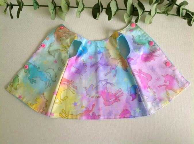 Attach your Velcro or your KAM snaps and your reversible A- line doll dress is ready!!