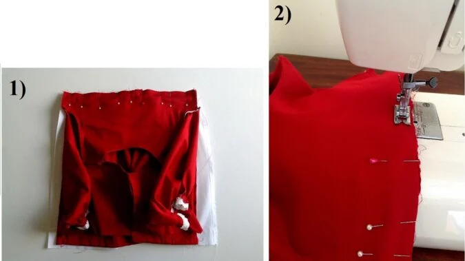 2)Pull the thread from the bobbin gently to gather it. Repeat the steps on the other sleeve to finish it in a similar manner.