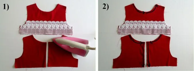 1)) Turn over to the right side and press flat for the front and back bodices.