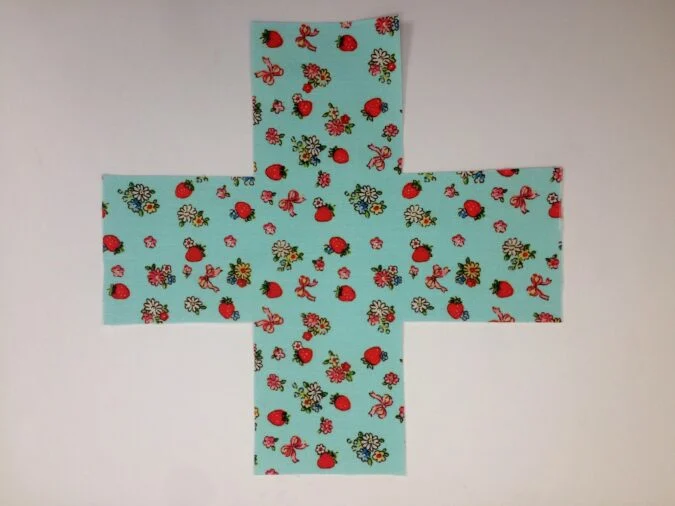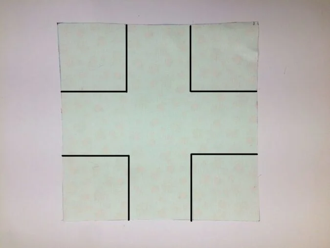 Cut out the squares from each of the four corners to create a plus-shaped piece, as shown above