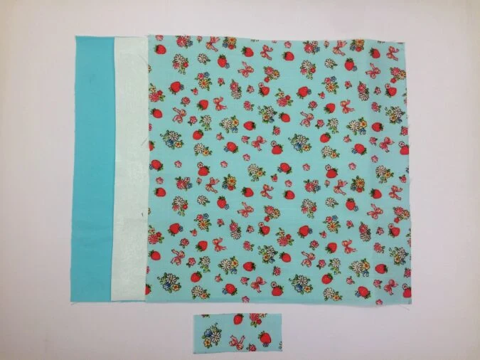 Cut one interfacing piece, with the same dimensions as the above.