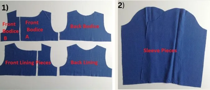 You will get your front bodice pieces, front lining pieces, back bodice piece, back lining and sleeve pieces like the above.