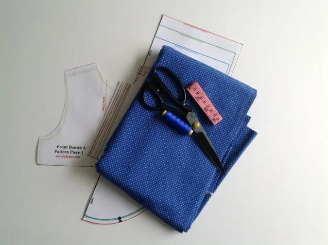1) Medium weight cotton fabric for the bodice, skirt and sleeves- requirement specified in the table- 2 below.