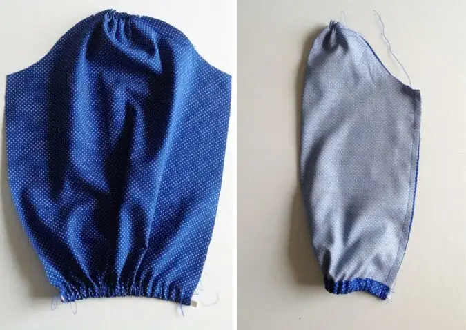 4) Secure the ends of the elastic by sewing back and forth a few times. Repeat on the other sleeve.