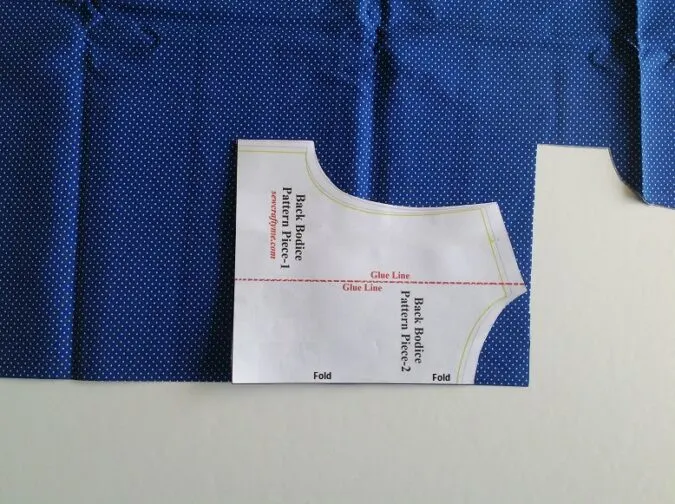 Next, cut the back pattern template and keep it along the Fold of the folded fabric as shown in the picture. Mark and cut to get the back bodice