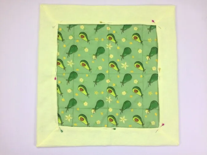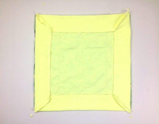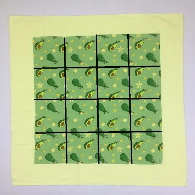 Draw parallel lines 3- inches apart across the front fabric (for larger sizes, you can draw the lines 5- inches apart). Then, draw a second set of lines at right angles to the first, creating squares as shown above. Sew along the lines. **This is done so that the layers of fabric do not get separated while using and washing.