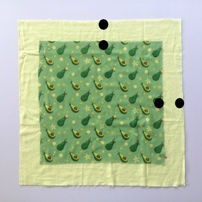 With the wrong sides touching, place the front piece over the back, such that the marked center points are in line.